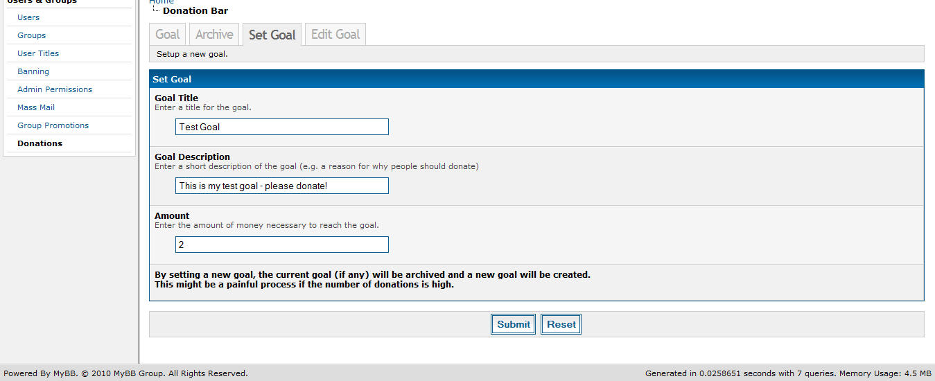 Adds a donations goals system to MyBB (donations are processed with PayPal).