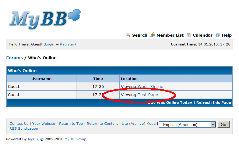 Notice: Every page you create will be displayed correctly on "Who is online" list!
