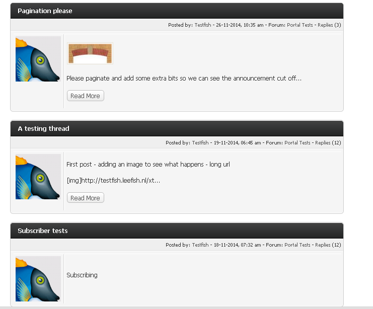 Portal Announcements are great but they show all the post content; if you want to trim down the size of the portal announcements then this plugin will set a limit on the number of characters shown in an announcement. The plugin adds an ellipse at the end of the shown text and a read more link.Autor: Leefish