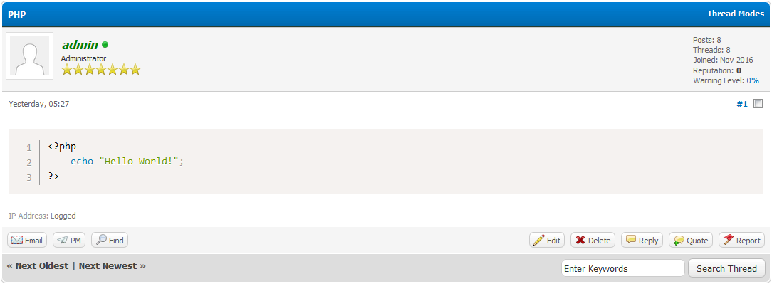 BB GeSHi Filter (Syntax Highlighting) 1.1 von eXecute für MyBB 1.4.x