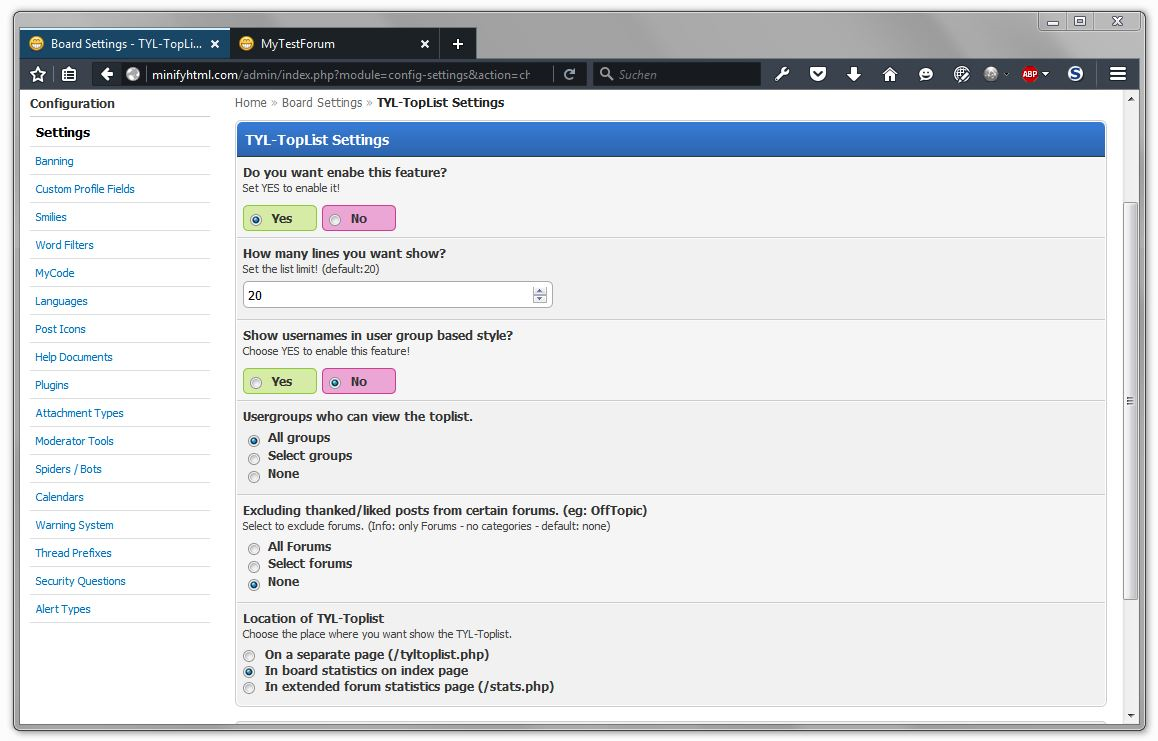 - Added a plugin option to show the toplist in forum statistics instead of single page.