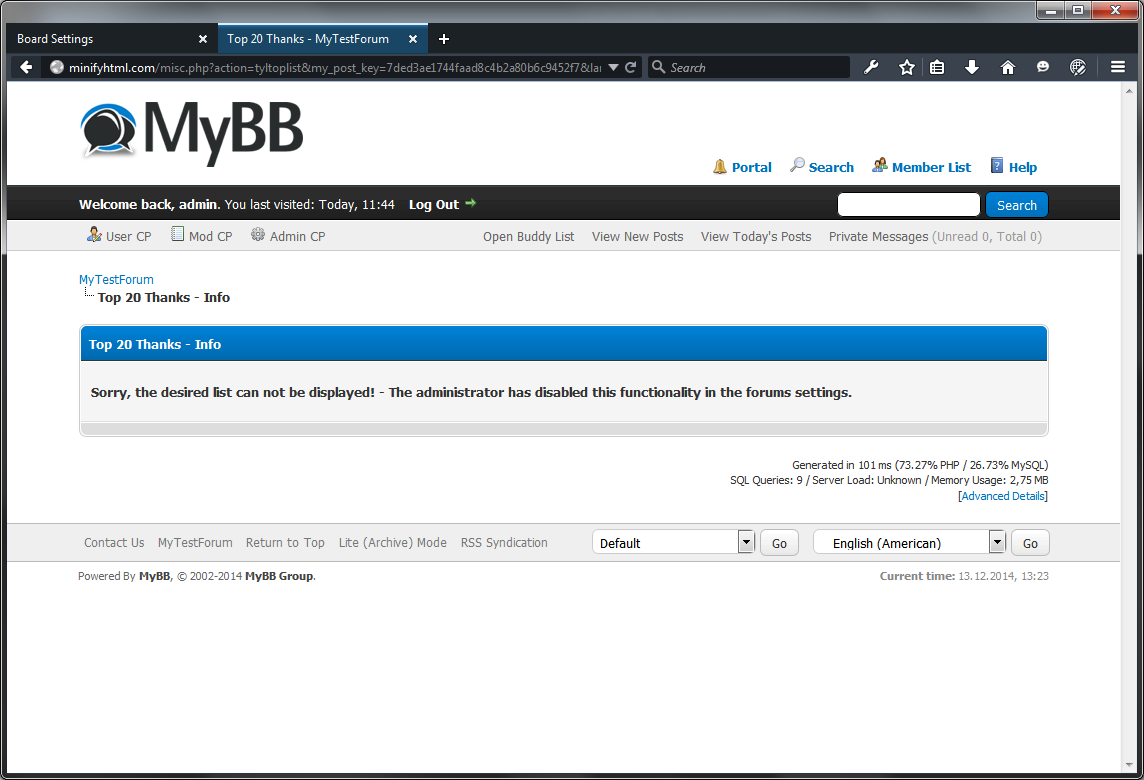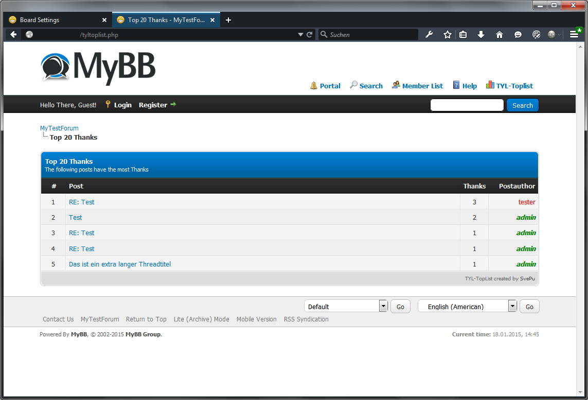 or view the list optionally in forum statisticsThis plugin offers full language support.