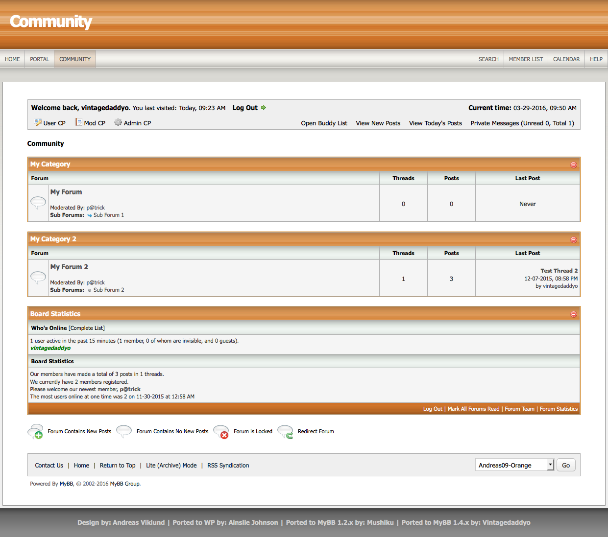You may not remove or change the MyBB copyright nor the Designed by: "Vintagedaddyo" statements in the footer of this theme's templates. You may use and modify this theme to your personal likings, but redistributing a modified version for download is prohibited, unless you have explicit written permission from "Vintagedaddyo", though you are allowed to redistribute a copy that has not been modified.