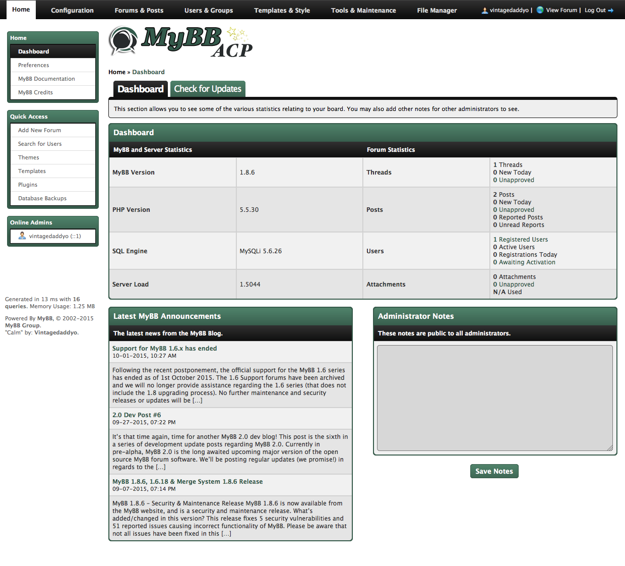 You may not remove or change the MyBB copyright nor the Designed by: "Vintagedaddyo" statements in the footer of this ACP Style's templates. You may use and modify this ACP Style to your personal likings, but redistributing a modified version for download is prohibited, unless you have explicit written permission from "Vintagedaddyo", though you are allowed to redistribute a copy that has not been modified.