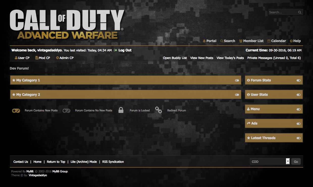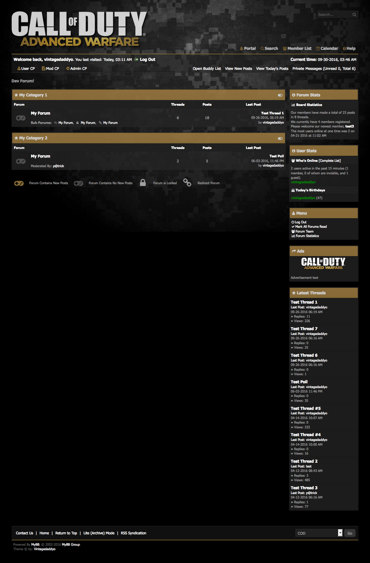 This is a simple dark theme for MyBB enthusiasts styled for Call of Duty fans.