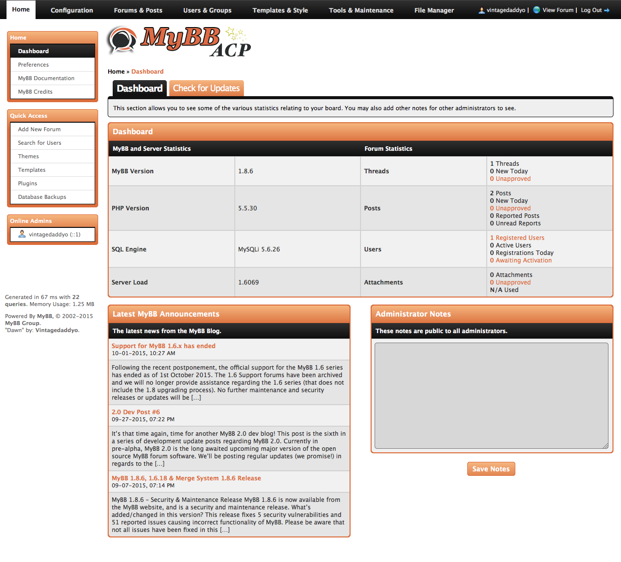 You may not remove or change the MyBB copyright nor the Designed by: "Vintagedaddyo" statements in the footer of this ACP Style's templates. You may use and modify this ACP Style to your personal likings, but redistributing a modified version for download is prohibited, unless you have explicit written permission from "Vintagedaddyo", though you are allowed to redistribute a copy that has not been modified.