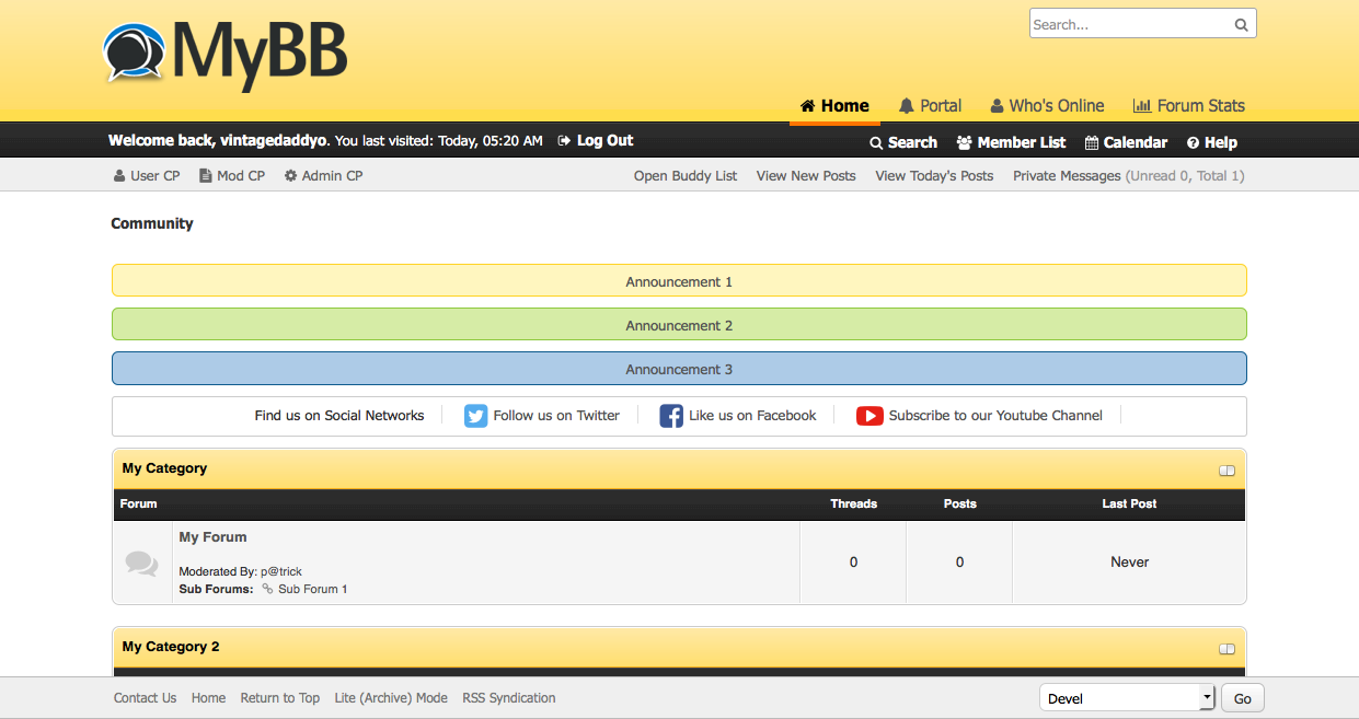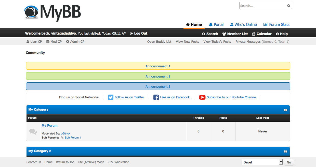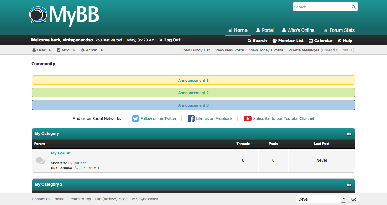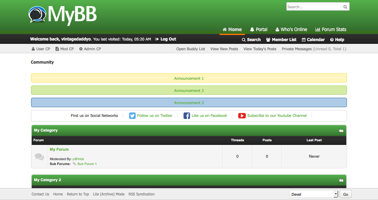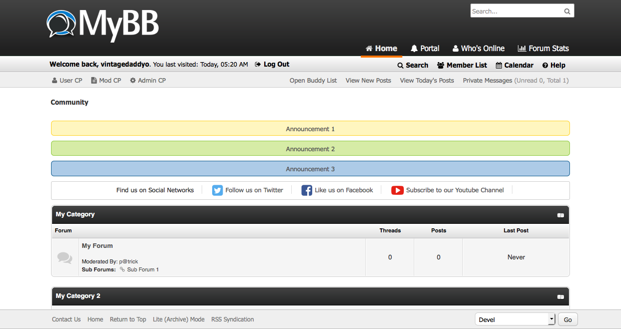 This theme for MyBB enthusiasts is made to be similar to the MyBB Community forum theme header