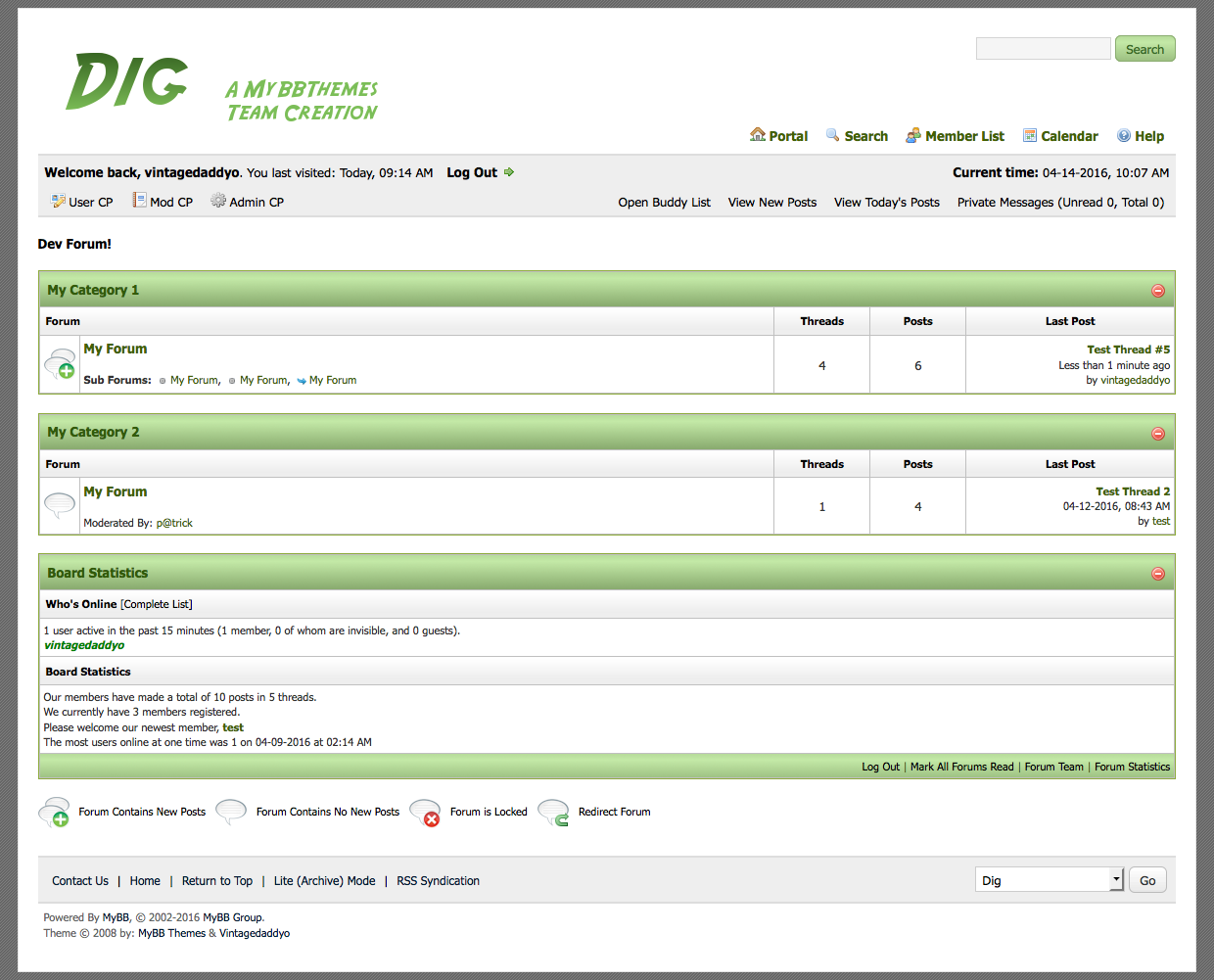 You may not remove or change the MyBB copyright nor the Designed by: "Vintagedaddyo" or "MyBB Themes" statements in the footer of this theme's templates. You may use and modify this theme to your personal likings, but redistributing a modified version for download is prohibited, unless you have explicit written permission from "Vintagedaddyo" or "MyBB Themes", though you are allowed to redistribute a copy that has not been modified.