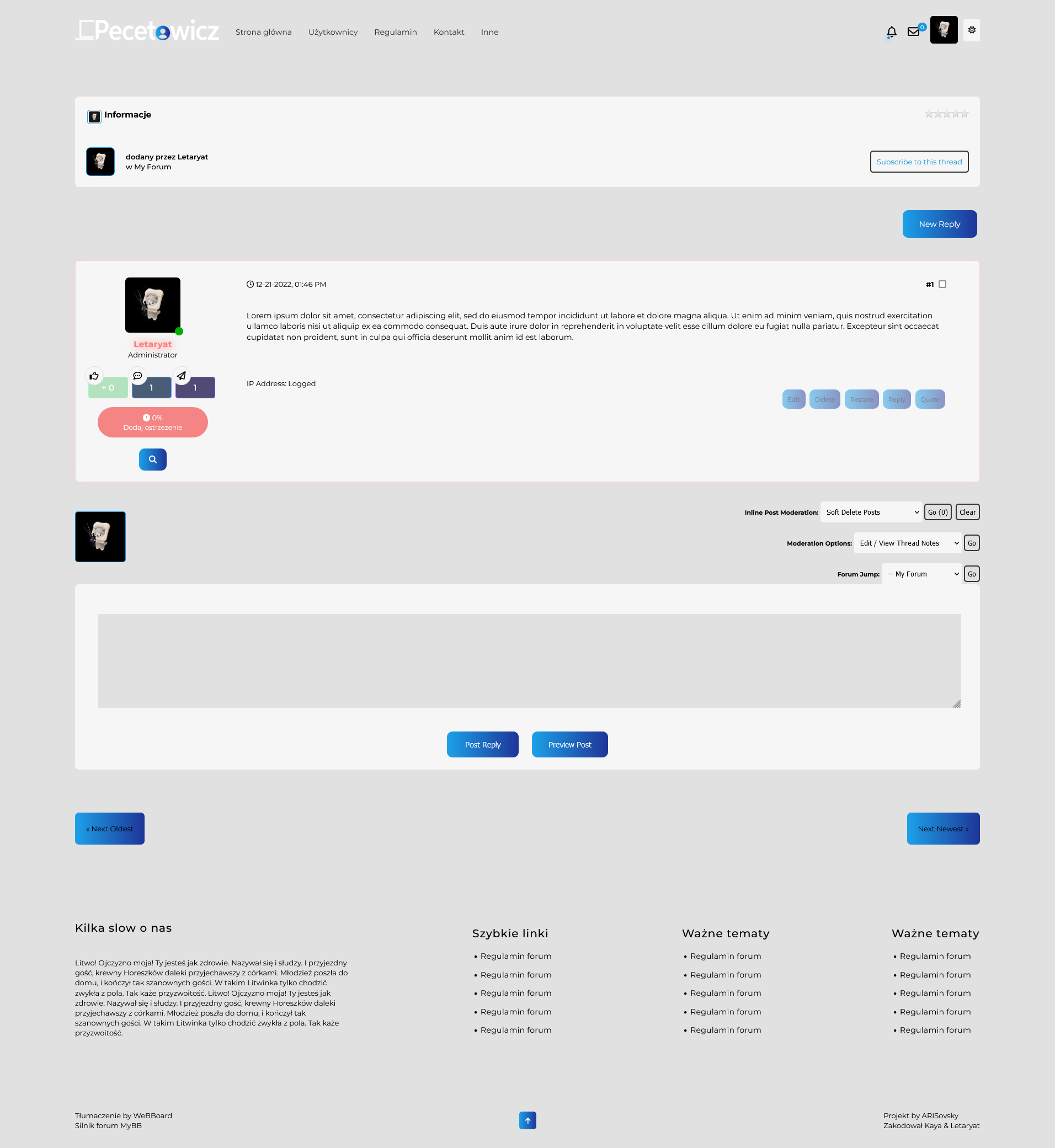 It is my first ever theme made for MyBB so theme might be bugged. It might be not finished in some places.