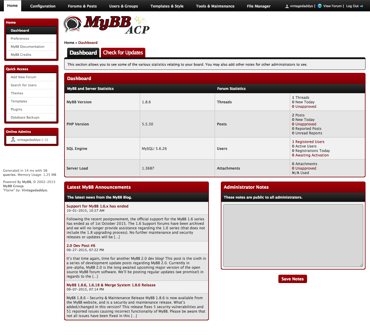 You may not remove or change the MyBB copyright nor the Designed by: "Vintagedaddyo" statements in the footer of this ACP Style's templates. You may use and modify this ACP Style to your personal likings, but redistributing a modified version for download is prohibited, unless you have explicit written permission from "Vintagedaddyo", though you are allowed to redistribute a copy that has not been modified.