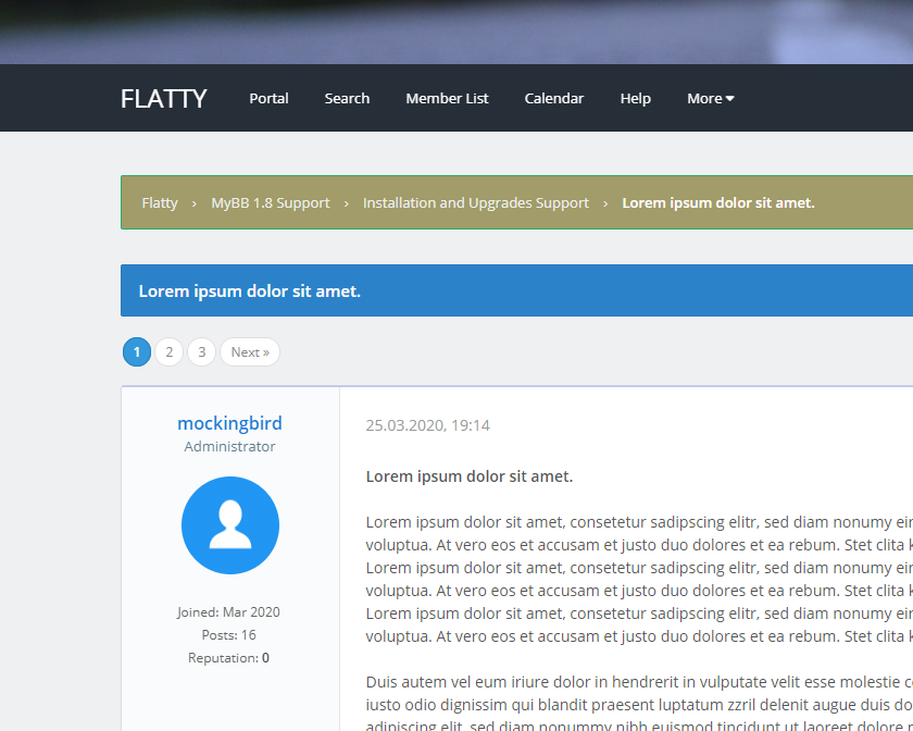 Flatty is a nice, simple, lightweight & flat theme for MyBB.Autor: m0ckingbird