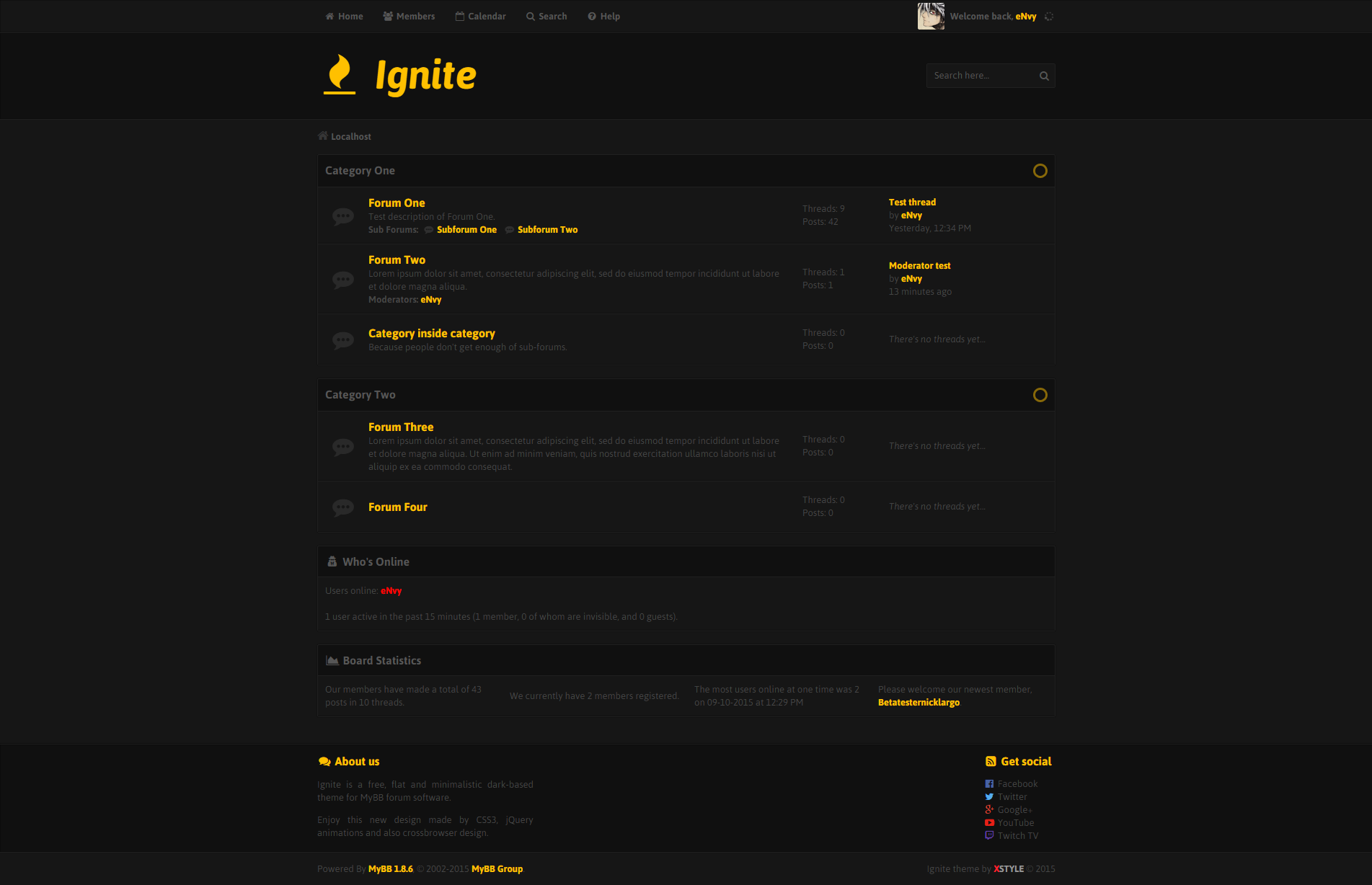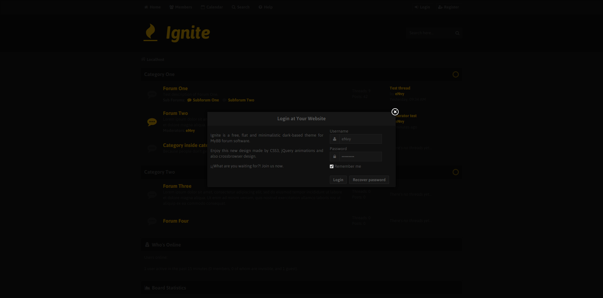 Ignite is a free, flat and minimalistic dark-based theme for MyBB forum software.