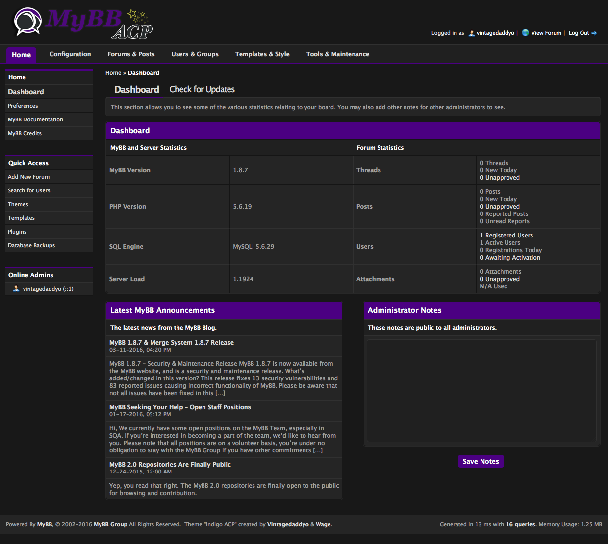 You may not remove or change the MyBB copyright nor the Designed by: "Vintagedaddyo & Wage" statements in the footer of this ACP Style's templates. You may use and modify this ACP Style to your personal likings, but redistributing a modified version for download is prohibited, unless you have explicit written permission from "Vintagedaddyo & Wage", though you are allowed to redistribute a copy that has not been modified.