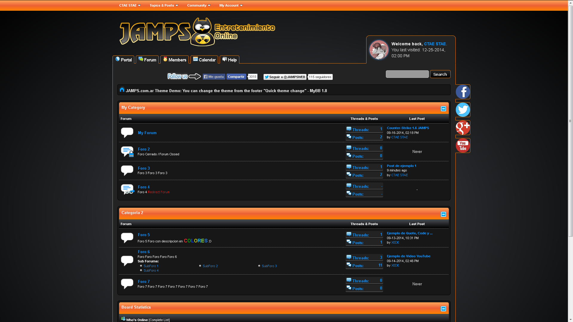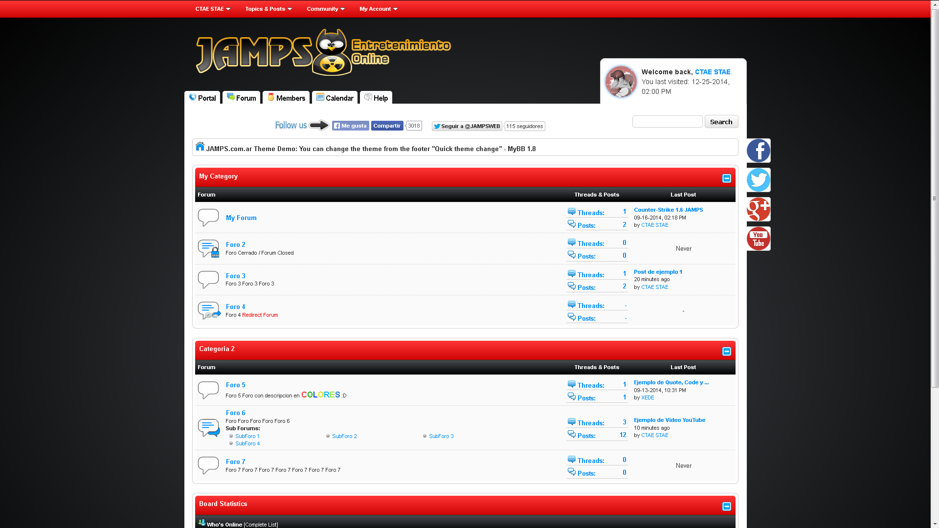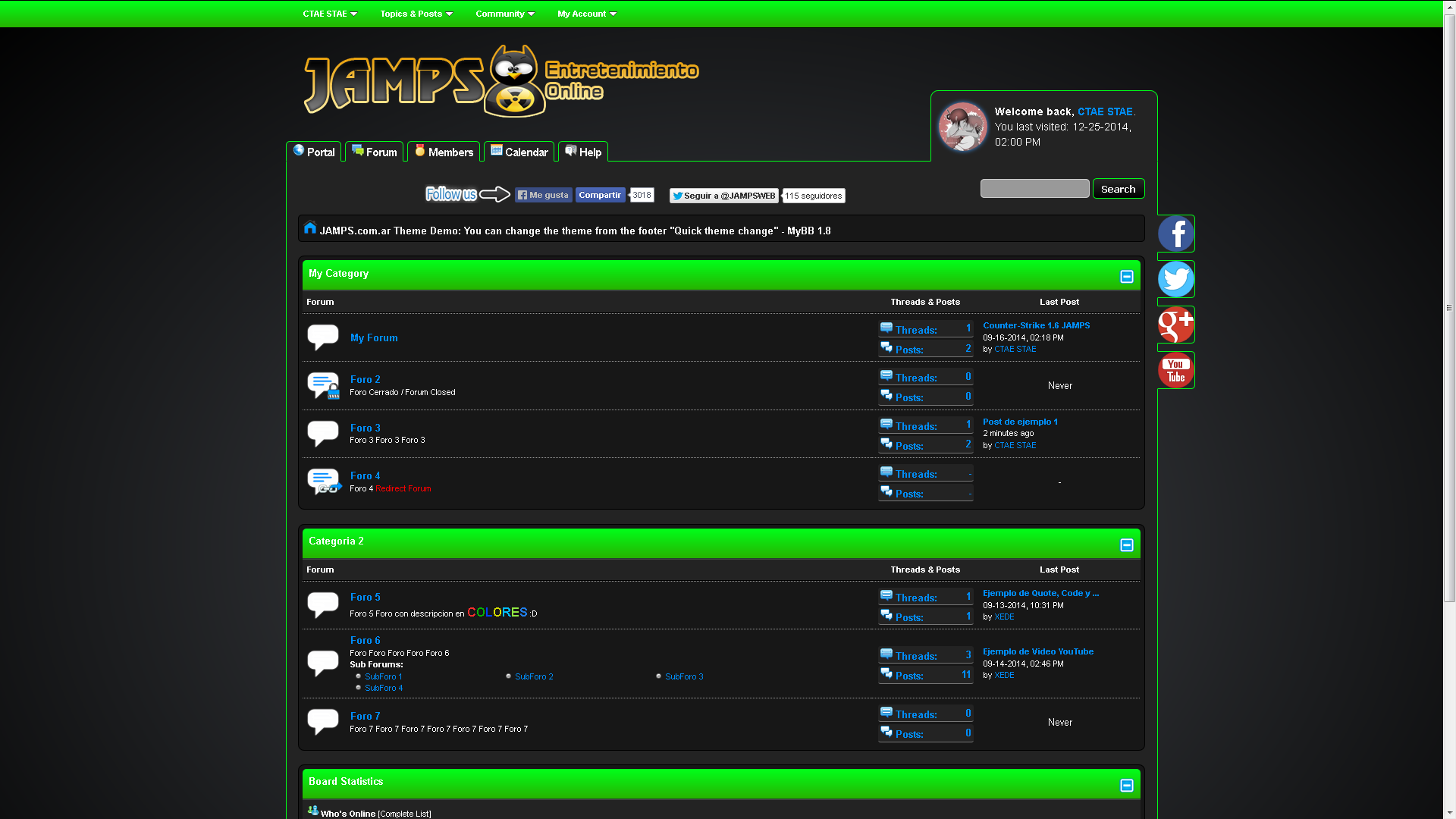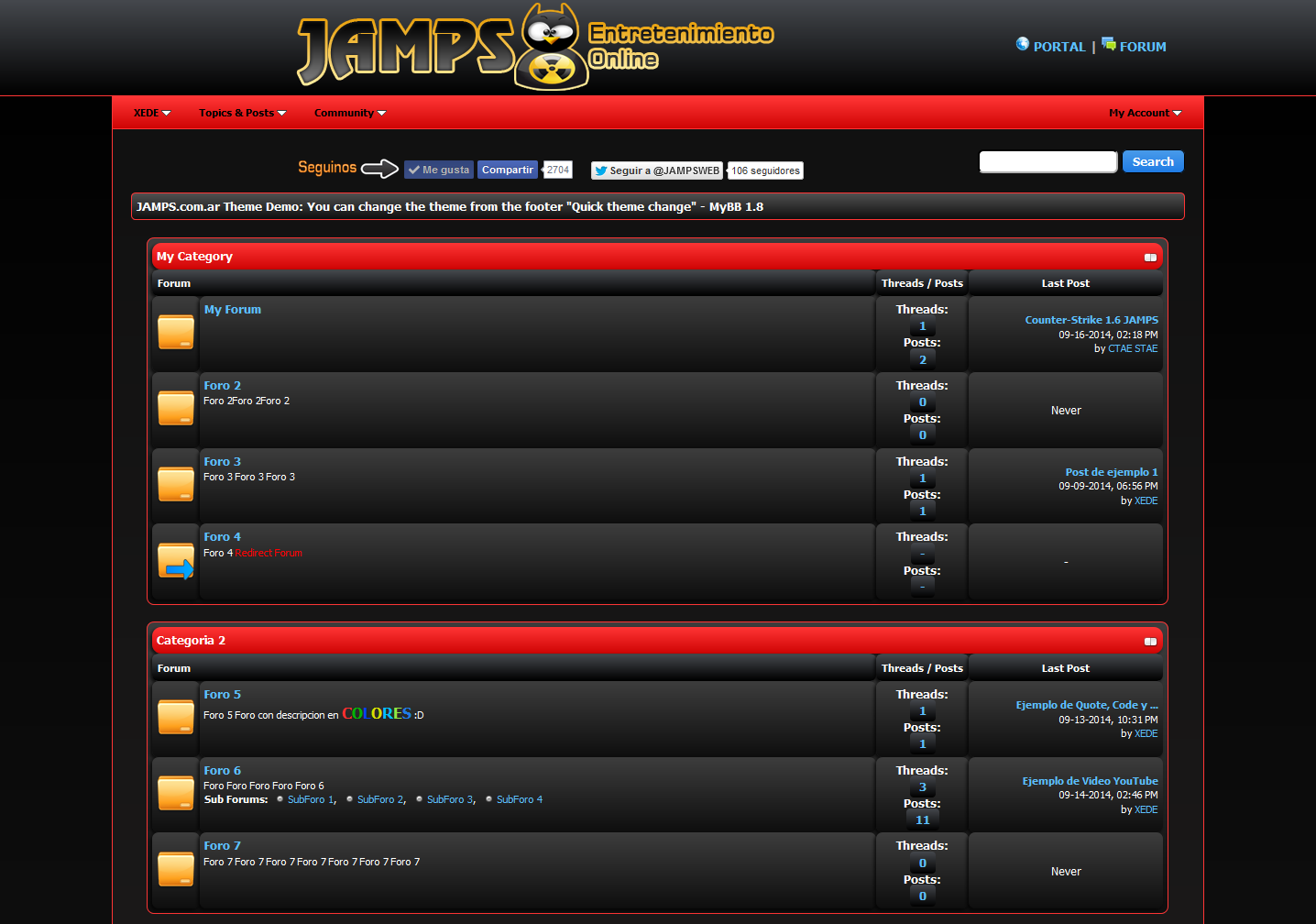 Este es mi nuevo theme para MyBB, el mismo lo denomine "JAMPS - Black & Red v2", estilo creado para Mybb 1.8.