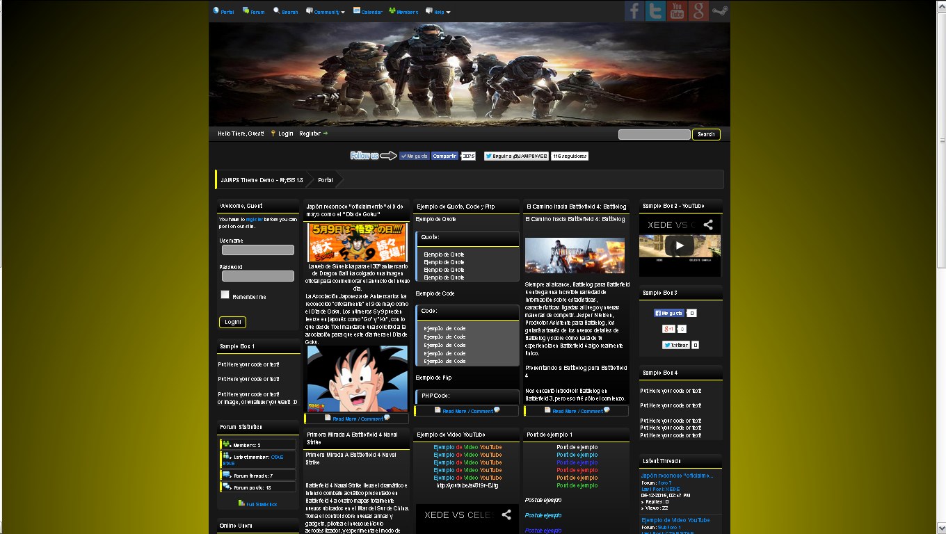 Tengo problemas para subir las imágenes .JPG a Mybb.com, para la vista previa del theme usen estos links o bien el Demo Online: