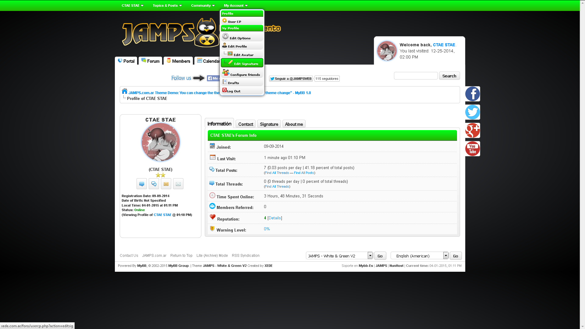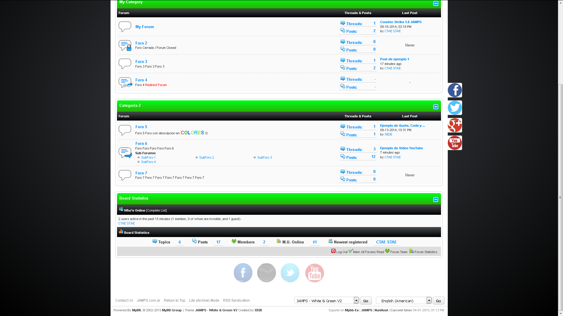 Este es mi nuevo theme para MyBB, el mismo lo denomine "JAMPS - White & Green V2", estilo creado para Mybb 1.8.