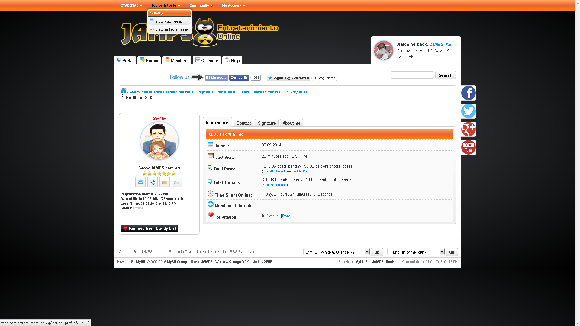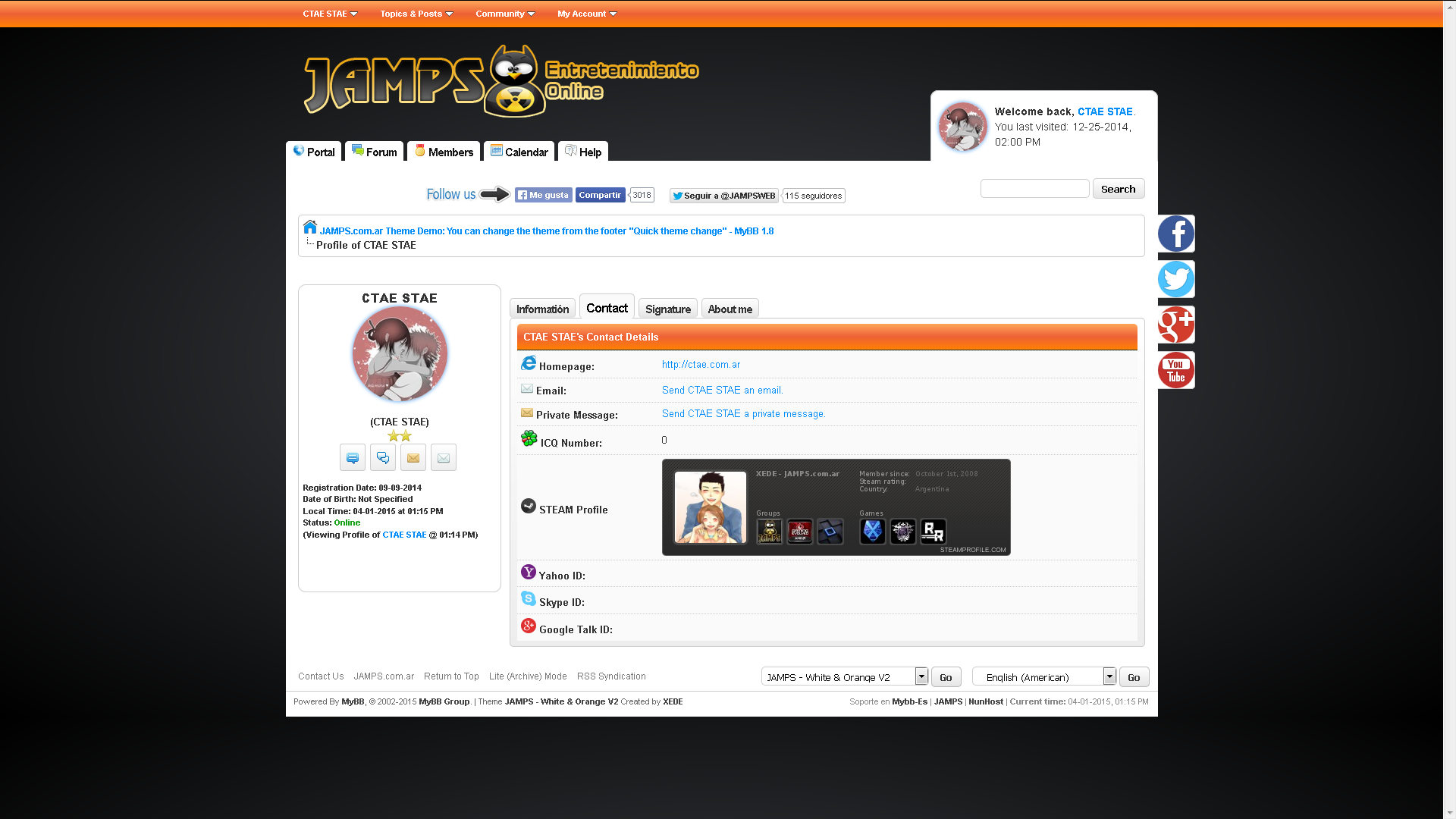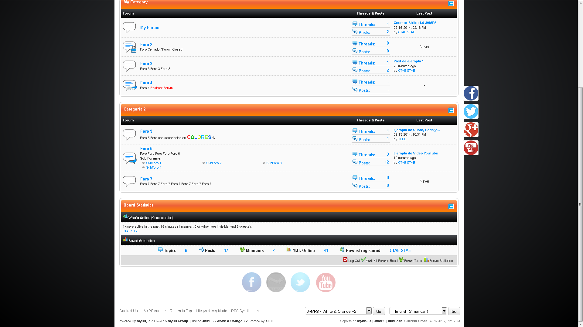 Este es mi nuevo theme para MyBB, el mismo lo denomine "JAMPS - White & Orange V2", estilo creado para Mybb 1.8.