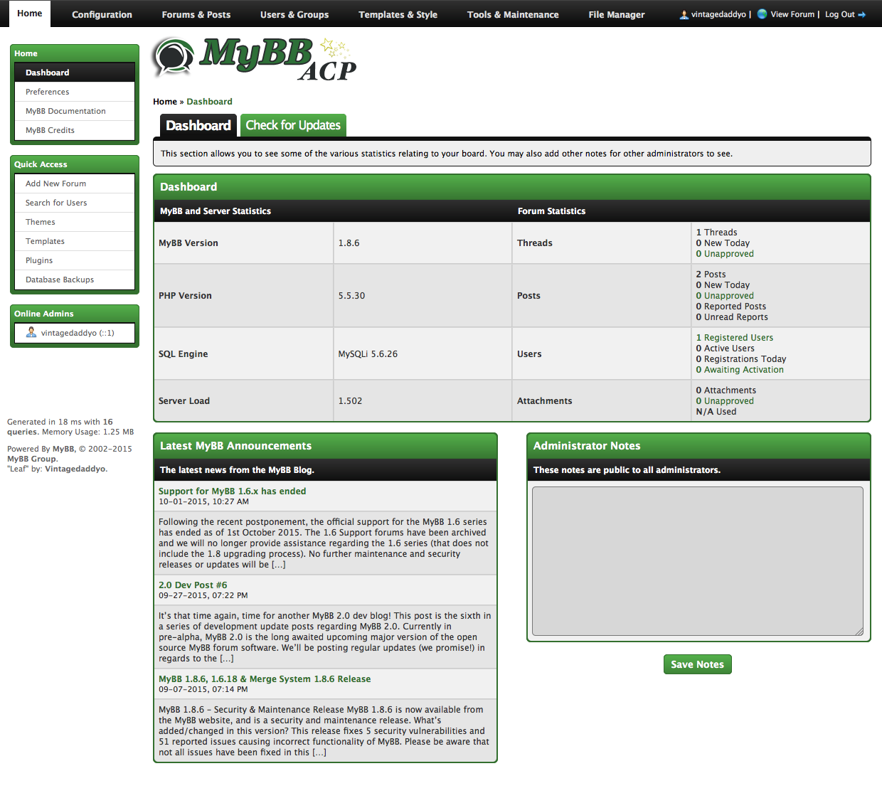 You may not remove or change the MyBB copyright nor the Designed by: "Vintagedaddyo" statements in the footer of this ACP Style's templates. You may use and modify this ACP Style to your personal likings, but redistributing a modified version for download is prohibited, unless you have explicit written permission from "Vintagedaddyo", though you are allowed to redistribute a copy that has not been modified.