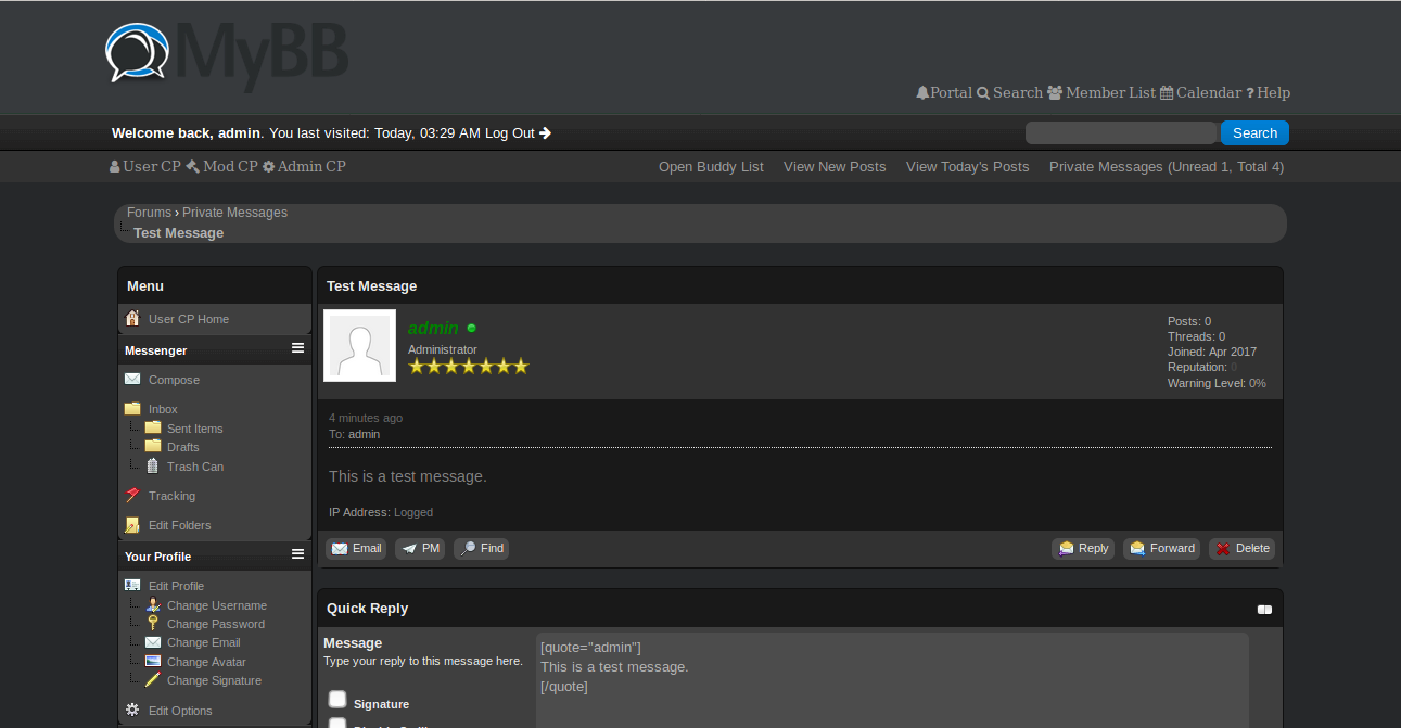 MyBB Dark is a twist of the default MyBB theme in that everything is darkened.