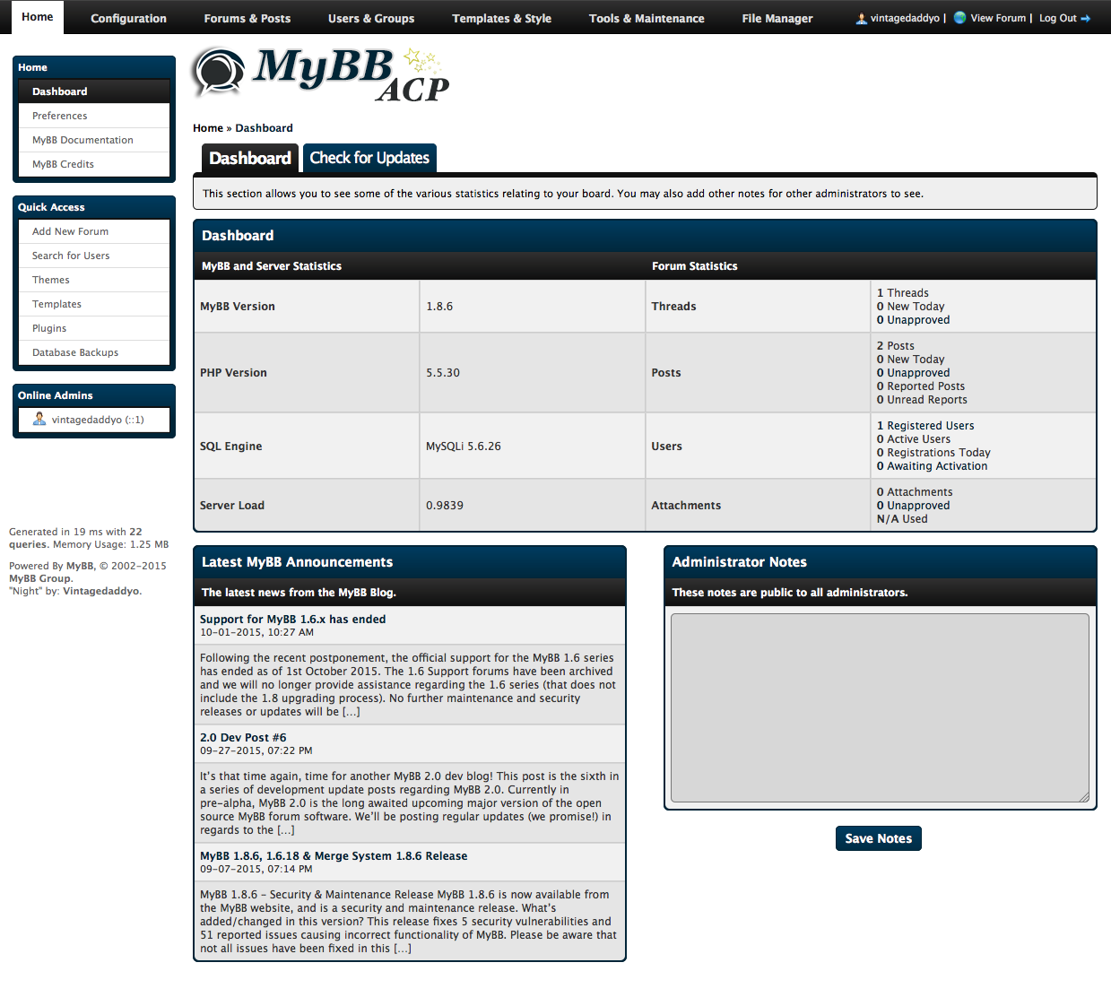 You may not remove or change the MyBB copyright nor the Designed by: "Vintagedaddyo" statements in the footer of this ACP Style's templates. You may use and modify this ACP Style to your personal likings, but redistributing a modified version for download is prohibited, unless you have explicit written permission from "Vintagedaddyo", though you are allowed to redistribute a copy that has not been modified.