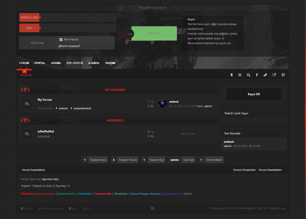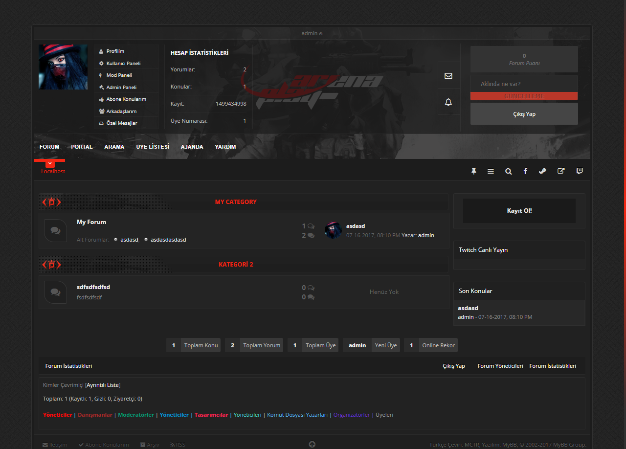 Dizin: https://i.hizliresim.com/XXr4B3.png Giriş Paneli: https://i.hizliresim.com/bGdblZ.pngKullanıcı Paneli: https://i.hizliresim.com/dGAbnD.pngKonu Gösterimi: https://i.hizliresim.com/5Q1V8z.pngÜye Profili: https://i.hizliresim.com/AkdJAv.pngKullanıcı Kontrol Paneli: https://i.hizliresim.com/0BoD7Z.png