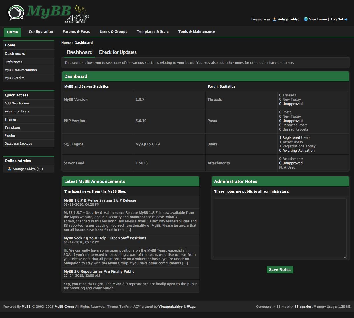 You may not remove or change the MyBB copyright nor the Designed by: "Vintagedaddyo & Wage" statements in the footer of this ACP Style's templates. You may use and modify this ACP Style to your personal likings, but redistributing a modified version for download is prohibited, unless you have explicit written permission from "Vintagedaddyo & Wage", though you are allowed to redistribute a copy that has not been modified.