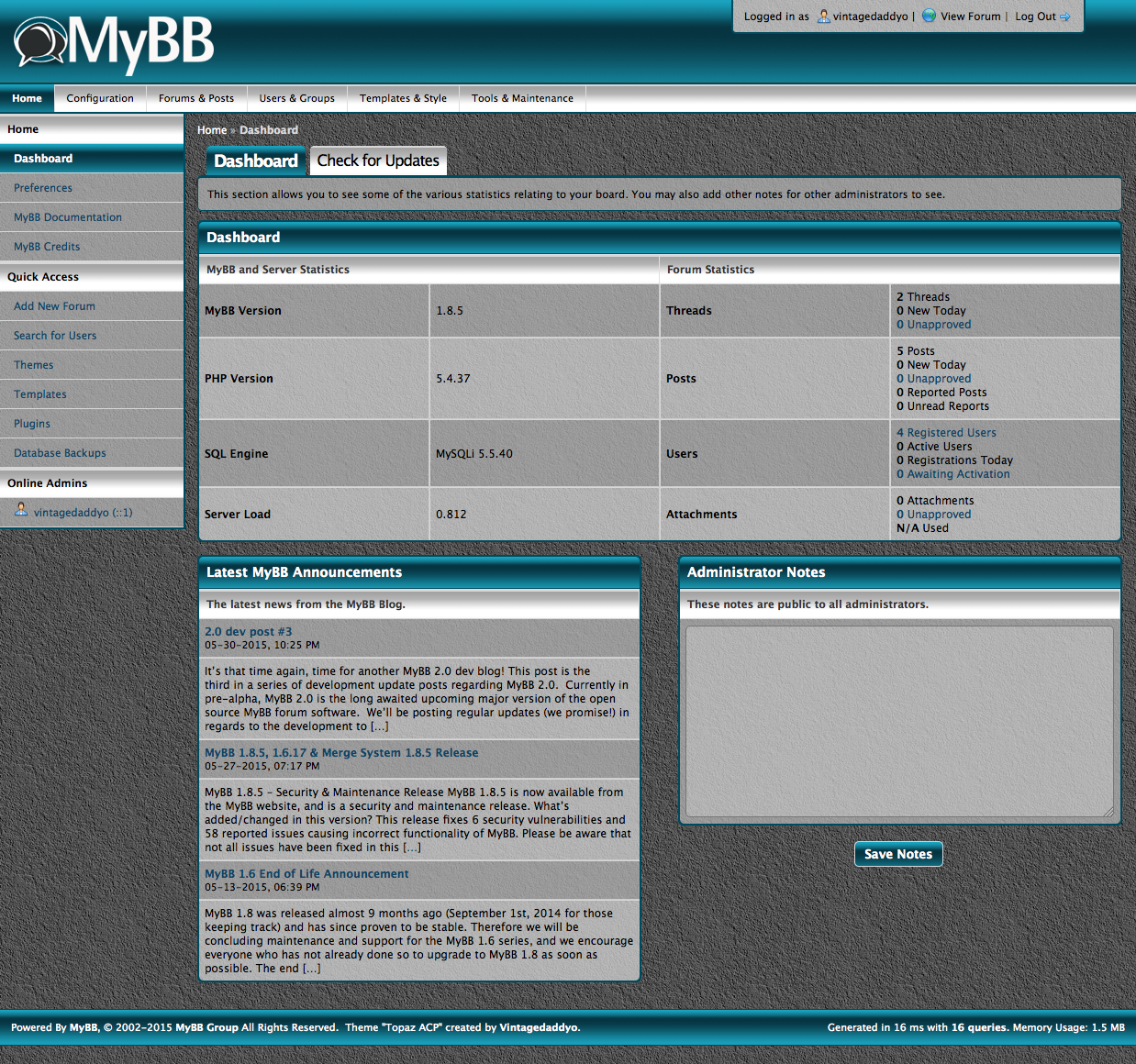 You may not remove or change the MyBB copyright nor the Designed by: "Vintagedaddyo" statements in the footer of this ACP Style's templates. You may use and modify this ACP Style to your personal likings, but redistributing a modified version for download is prohibited, unless you have explicit written permission from "Vintagedaddyo", though you are allowed to redistribute a copy that has not been modified.