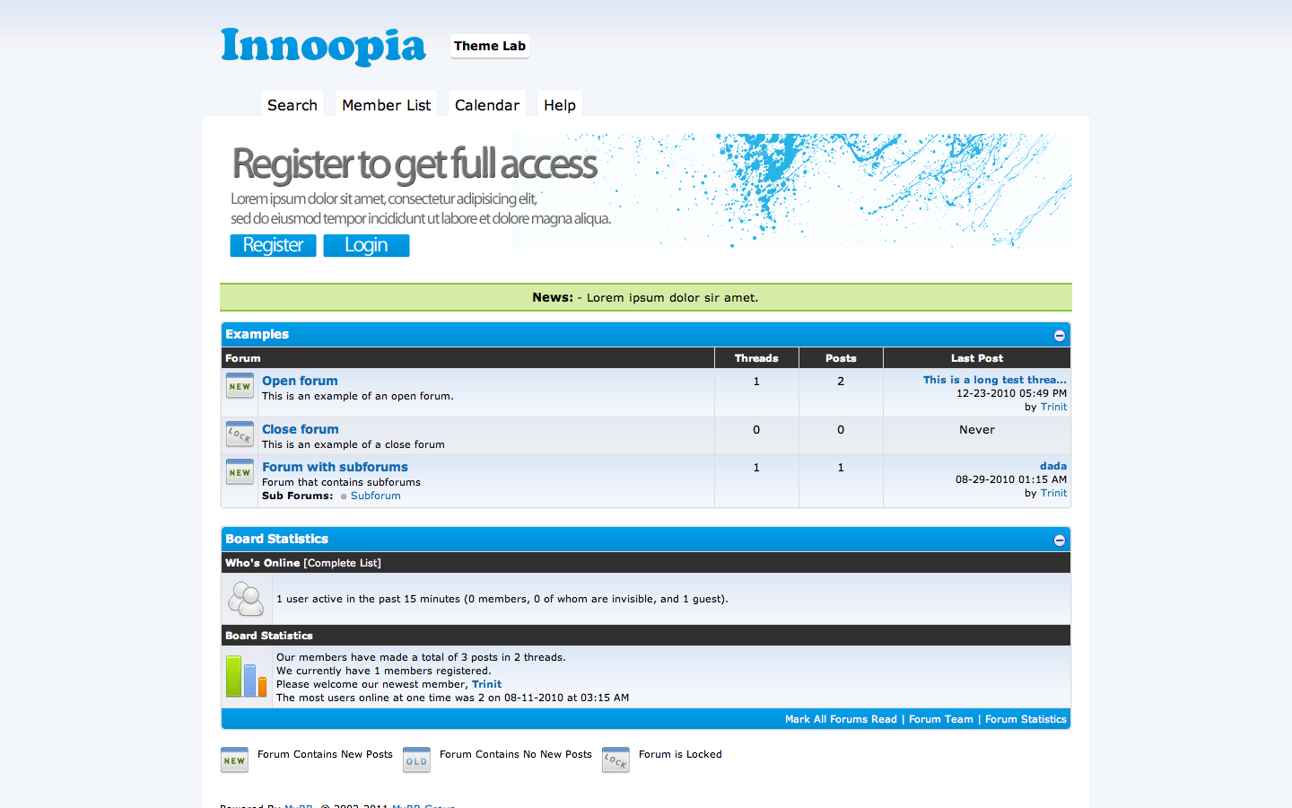 A theme for Mybb 1.6 very professional. It uses a jQuery login + menu like the Twitter one.