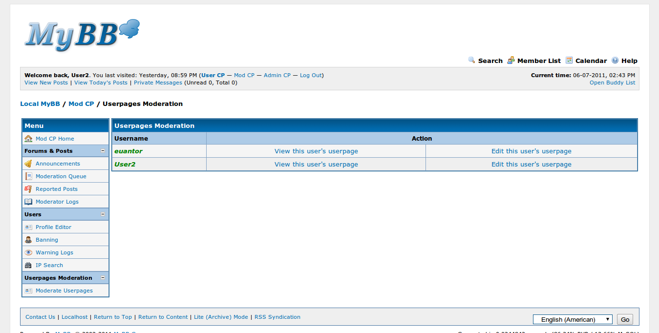 Userpages for MyBB 1.3 für MyBB 1.6.x