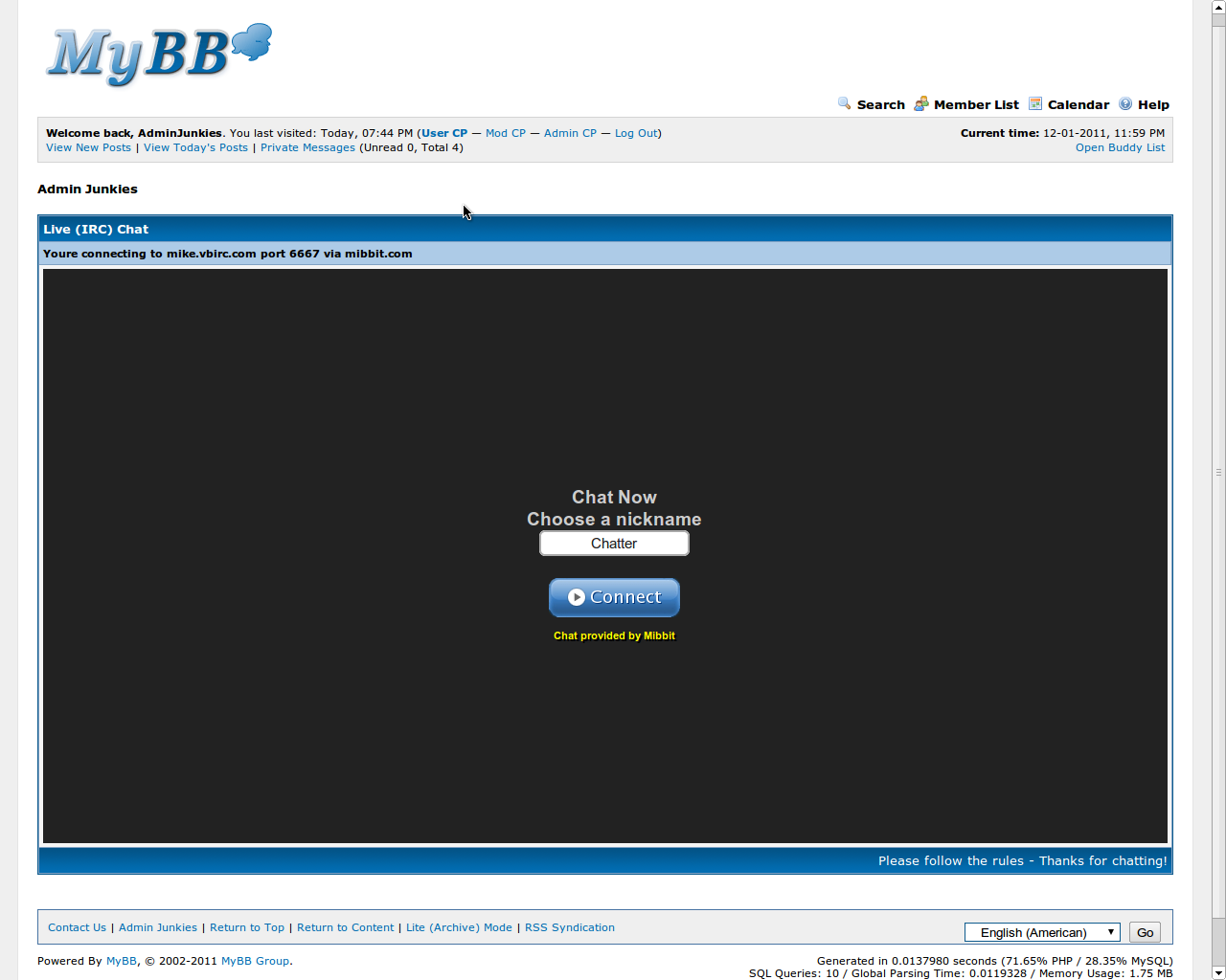 EzIRC Chat for MyBB