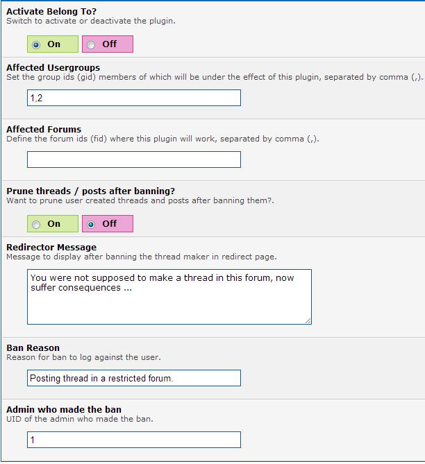 A Plugin for MyBB to ban a user on posting in a certain forum.