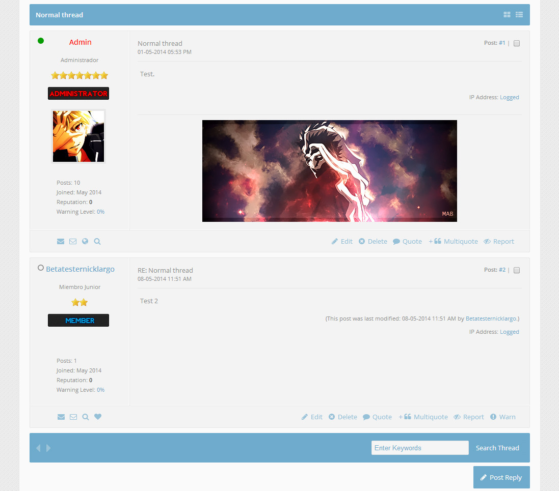 Square is a minimalistic theme, renewed for MyBB 1.8 series. You can find a lot of details, animated forums, sidebars, news and more with jQuery technology, and of course, all squared. Tested in the latest Google Chrome, Opera and Mozilla Firefox versions