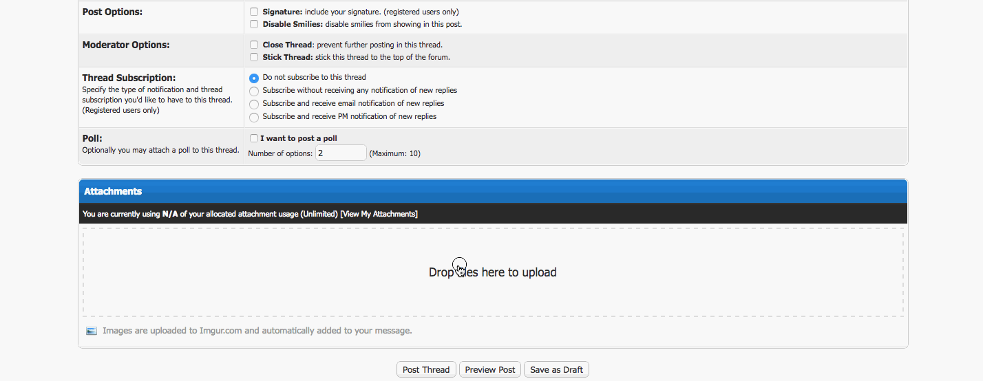 MyDropzone replaces MyBB's default attachments behavior with a reliable drag and drop solution (Dropzone.js) which uses AJAX instead. Uploading an attachment becomes extremely easy and fast.